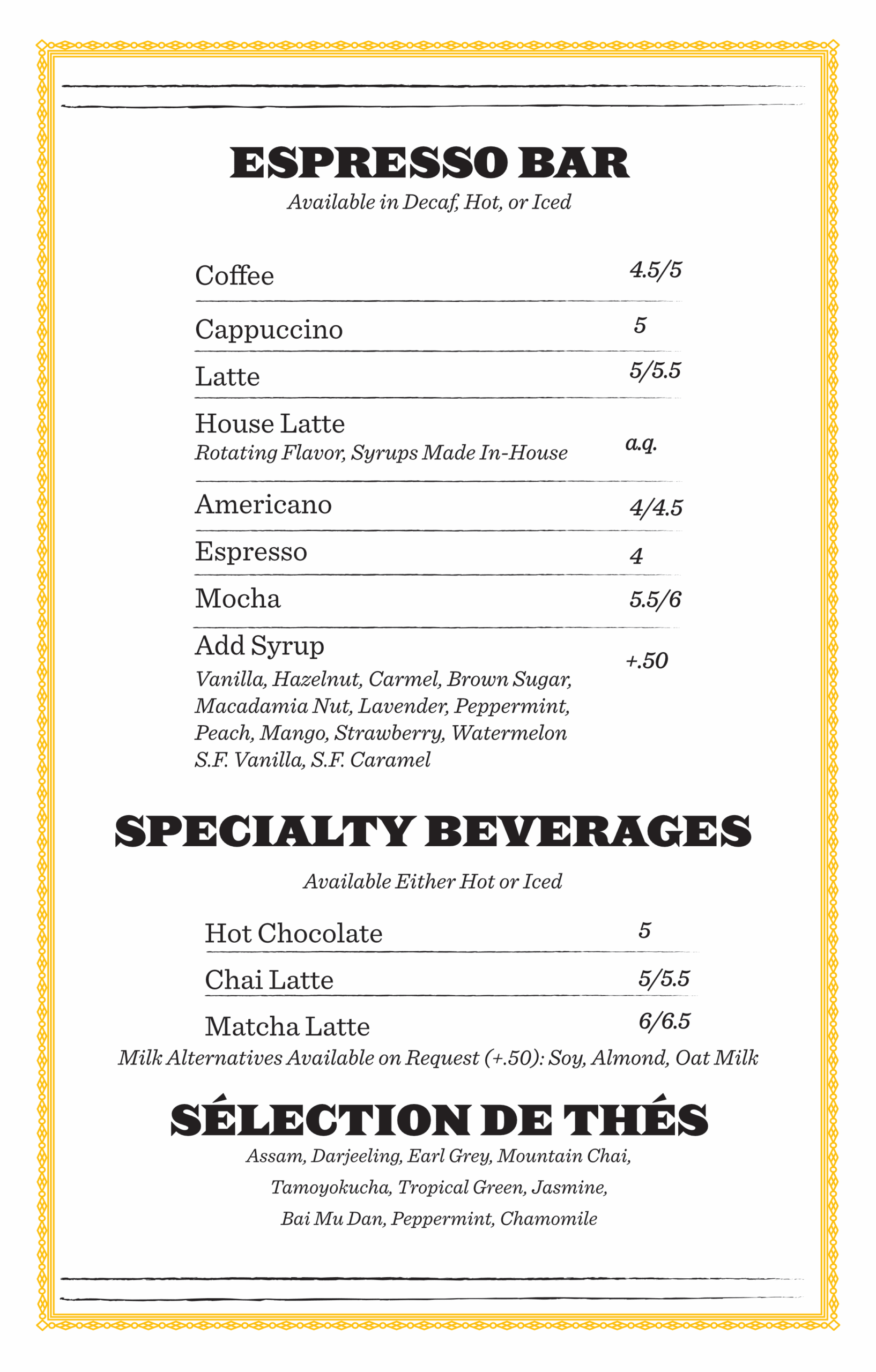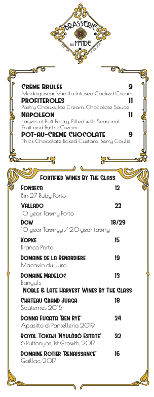 In 2021, we decided to expand our view of French cuisine by adding dishes from around the world that were inspired either by French recipes or techniques. As such, we also thought it appropriate to undergo a name change and we became Brasserie du Monde.